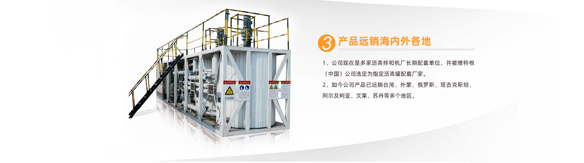 經(jīng)多年的努力,在行業(yè)內(nèi)已具有知名度及品牌影響力,獲得多家業(yè)內(nèi)企業(yè)的認(rèn)可,公司現(xiàn)在是多家瀝青拌和機(jī)廠長期配套單位,并被維特根(中國)公司選定為指定瀝青罐配套廠家。如今公司產(chǎn)品已遠(yuǎn)銷臺(tái)灣、外蒙、俄羅斯、塔吉克斯坦、阿爾及利亞、文萊、蘇丹等多個(gè)地區(qū)。 ...... 【查看詳情】